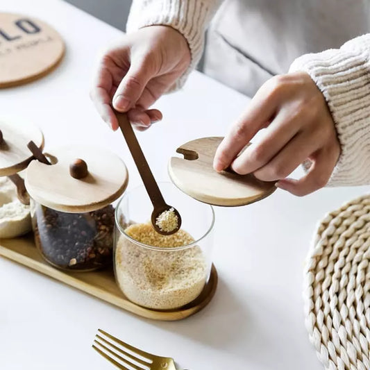 Economize 50%Conjunto de Potes de Vidro com Tampa de Madeira