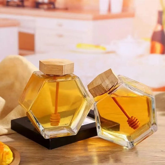 Economize 50%Meleira de Vidro Porta Mel com Colher
