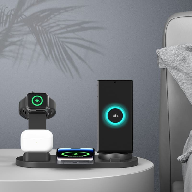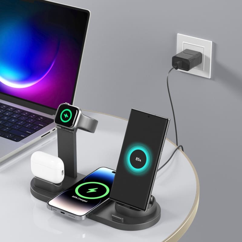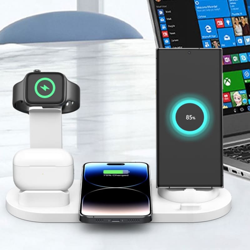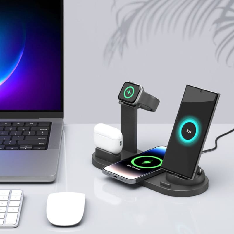 O Carregador por Indução Sem Fio Multifuncional Tissage é a solução ideal para quem busca praticidade e modernidade no dia a dia. Com design elegante, ele carrega celulares, fones de ouvido e smartwatches de maneira rápida e eficiente, sem a necessidade de fios. Perfeito para qualquer ambiente, como sala ou quarto, ele traz múltiplas funções em um único produto.