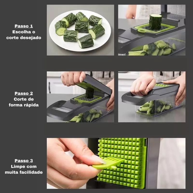 • Praticidade na cozinha: Corta, tritura e fatia em diferentes formas, acelerando o preparo das refeições.