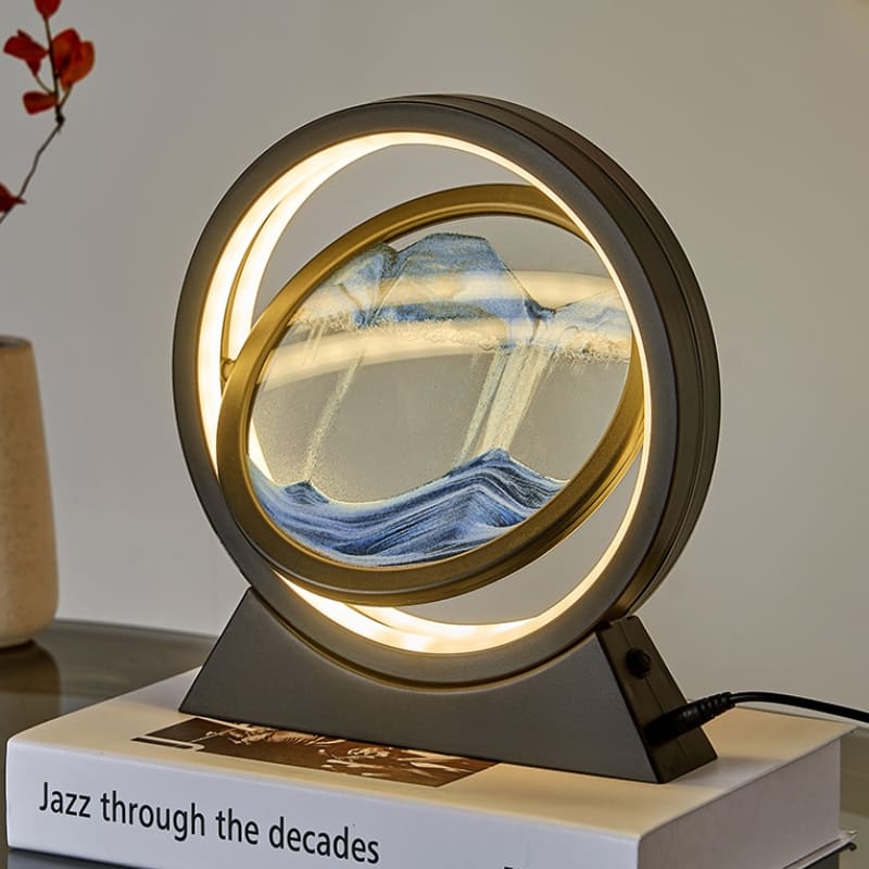 • Design Elegante e Relaxante: As imagens da ampulheta e as luzes LED criam uma atmosfera relaxante e decorativa.